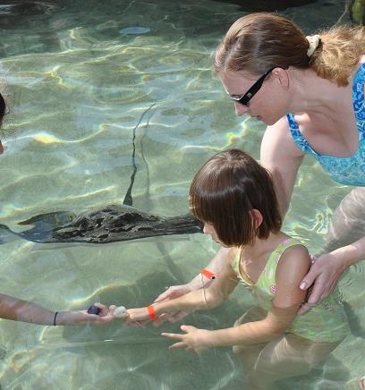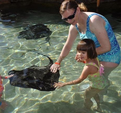 Then, my wife and daughter did the sting ray experience (there are up to 3 sessions per day - ours was 2pm). This was a one of a kind experience. I didn't join in the fun, but I took photos and listened to the instructors. We learned about sting rays - and in case you're curious, they remove the barbs, which are like finger nails and they grow right back. The participants got to touch them and feed them, all while the professional photographer took pictures (they have Photo Pass here too).