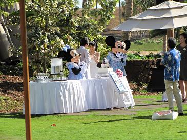 After the experience, my wife and daughter went into a quieter, smaller pool as I looked on a wedding in which Mickey and Minnie were the hosts.