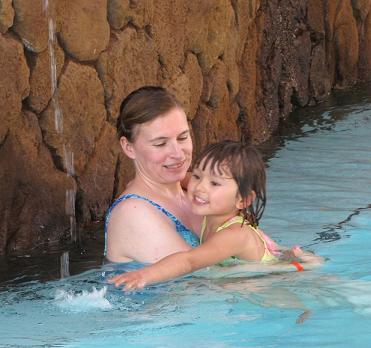 We went into the infinity hot tubs until we were well cooked, because quite frankly, the pool water was way too cold for me (though apparently not too cold for our daughter). The hot tub was therapy - there are two levels of the hot tub, and the hot water overflows from one to the other - so if you sit just beneath the upper tub, you can have the hot water drench you from above - it was like a massage.