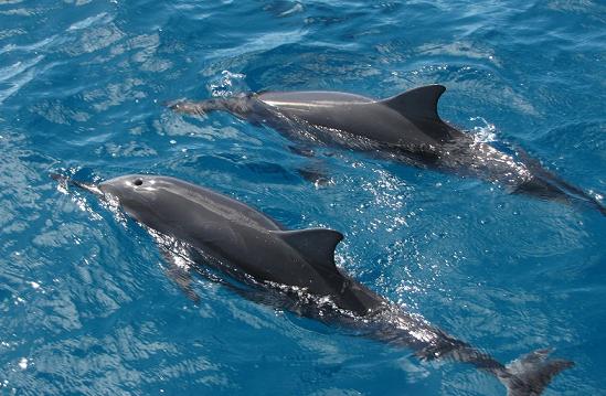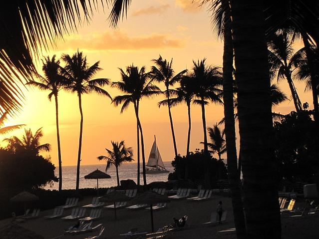 The activity for the morning was the Hoku Nai'a dolphin watch. Basically, a bus took us out to the marina, and from there we traveled north by large boat along the west coast, all the way to where the road ended. There, along the beach, the dolphins were spotted spinning and jumping - in fact, they came up to our boat and swam with us. By law, we were only allowed to stay there for half an hour, as dolphins hunt at night and we were to not keep them up past their "bed time." This was a great way to see dolphins up close in their natural habitat. We also learned a few miscellaneous things - the wet season starts in November and ends in April - we had caught the early wet season, which may explain the strong breezes in the afternoon (strong enough to wear a light jacket or at least long pants), but the west side of the island remained dry, at least for now.