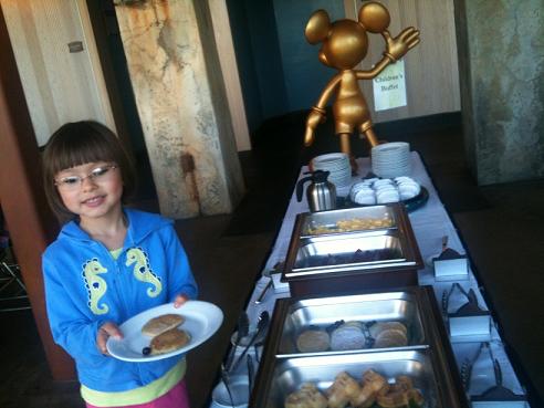 On early Tuesday morning, we had breakfast at Ama Ama (yes, reservation required - you can book it online) - it was a wonderful buffet, including Mickey Mouse waffles. This was apparently a trial period - they will go a la carte in December, but I hope they go back to buffet again. They had very nice service - food is $25 per head adults, $12 kids - and very worth it. They were extremely attentive and the food was very good - all with the beach as our background.