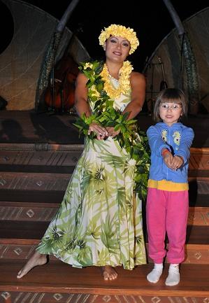 It didn't take long to figure that restaurant was an out of control zoo - crowded, loud, lousy service and not so exciting food. At least we were back in our hotel room early enough for our return to Starlit Hui. The show was again very good (different Uncle this time), but the fun was all the same. Our daughter participated in all the Keiki dances, and when the characters came out, she was out in front dancing away with them. This was a great way to spend our last evening at Aulani.
