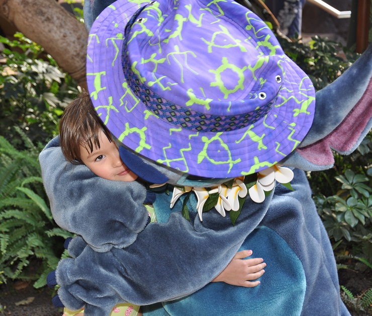 As soon as we walked out to the pool area, we saw Stitch - he was greeting the kids in a Hawaiian shirt. The wait to take pictures with took less than five minutes, which is unheard of at Disneyland.