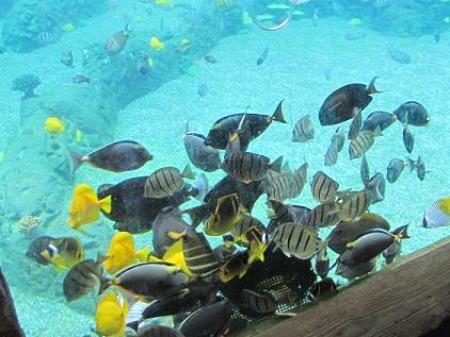 At 9am, we saw fish feeding in the Rainbow Reef, where something like 70 species of fish reside. Our daughter had a terrific time watching the fish (from a window). This "reef" is a glorified pool - don't assume that his is a section of the beach where fish come and go. We followed up the morning with photos with Minnie, and an hour later with Mickey. By this time, we had become accustomed to seeing adults (mostly Japanese - I can say that because I am one too) going absolutely nuts for these characters. What's great here is that the wait time is so short, and they take their time with each person.