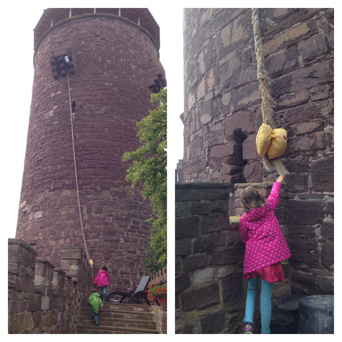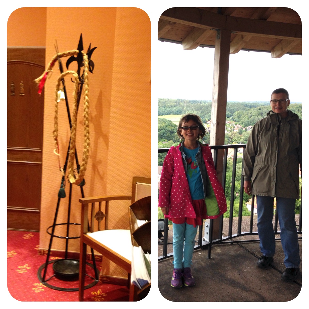 On this day, we also went to Trendelburg, which is Rapunzel's tower. The tower is only 15 minutes away from Sababurg. Here, we climbed the tower (not for people afraid of heights and very narrow staircases) and saw the town below us. We also ran over to grab Rapunzel's hair dangling from the tower. The kids and I didn't see the dungeon downstairs, but my wife had a chance to check it out.