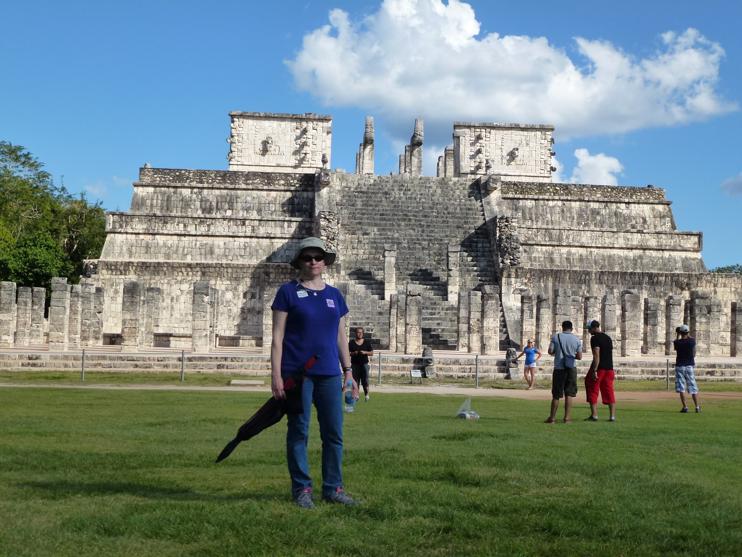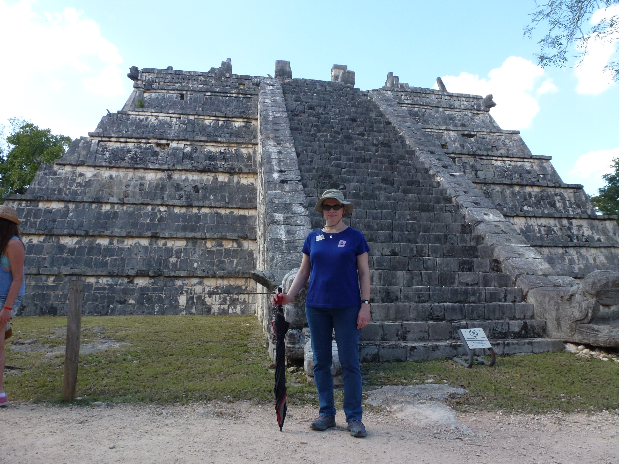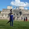 We continued our trek to Chichen Itza for another 45 minutes or so. Just a stroll from Chichen Itza, we had our buffet lunch (apparently the first ever hotel near Chichen Itza). Around our tables, the waitresses danced with beer bottles and serving trays on their heads, the obligatory show for tourists. We then walked to the grounds – maybe half a mile, to an entrance to the archaeological site. By this time, our guide had thoroughly lectured us on the history of the area, and how actual Mayan history was so different from the savagery that was originally dreamed up by Mr. Thompson, an oil explorer turned Maya expert by default. That said, the Mayans did sacrifice their elite class – every 52 years, the high class men and women gave their blood in rather painful and dizzying ways, and sacrificed the heads of their representative class.