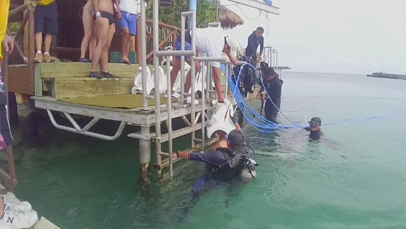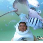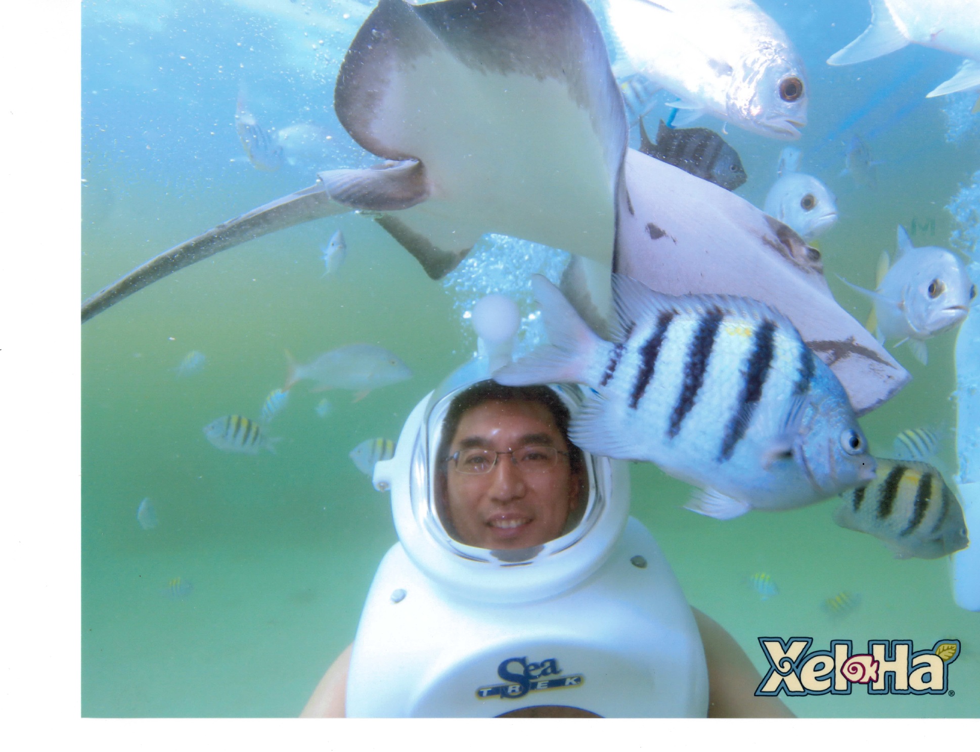 We departed La Perla at 7:40 on Thursday morning to get on the big bus to Xel Ha. This natural amusement park, about an hour away from La Perla, featured snorkeling, casual walks around the park and lots of cafeteria style food. For an added premium, they offered interactions with dolphins, manatees, snuba, sting rays and massage. We started our activities with a bike ride up to one end of the park, a river raft back down, and snorkeling. We followed up with lunch and then my SeaTrek walk under water to interact with sting rays and large fish. Admittedly, though, we've had better snorkeling in other tropical destinations.