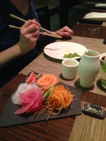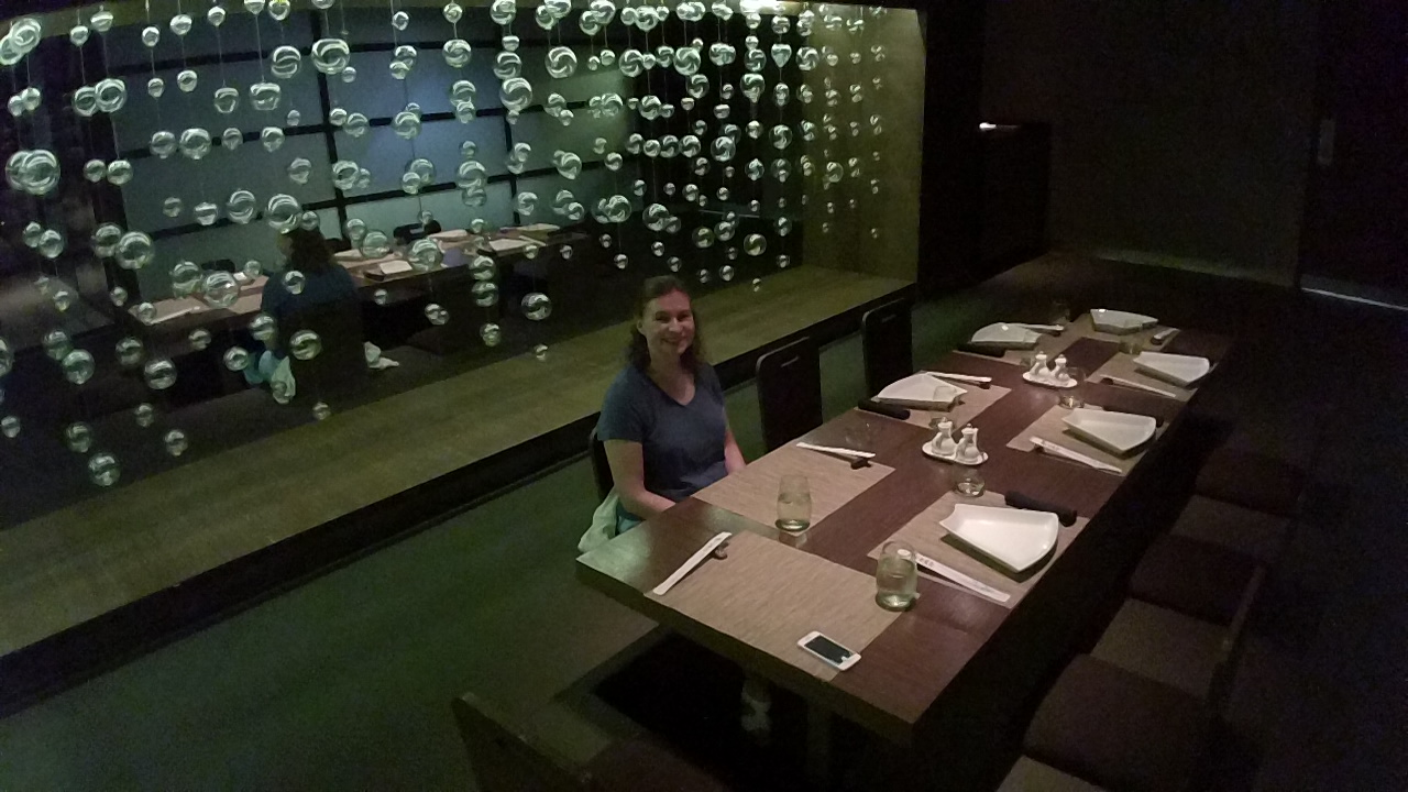 For dinner, we ate at Bana, a Japanese fusion restaurant. In the back is the tatami room where a set dinner awaited us. The room seats around 10 people, but as the other family had to cancel, the two of us were the only guests. Manuel, our server, gave us our own private service.