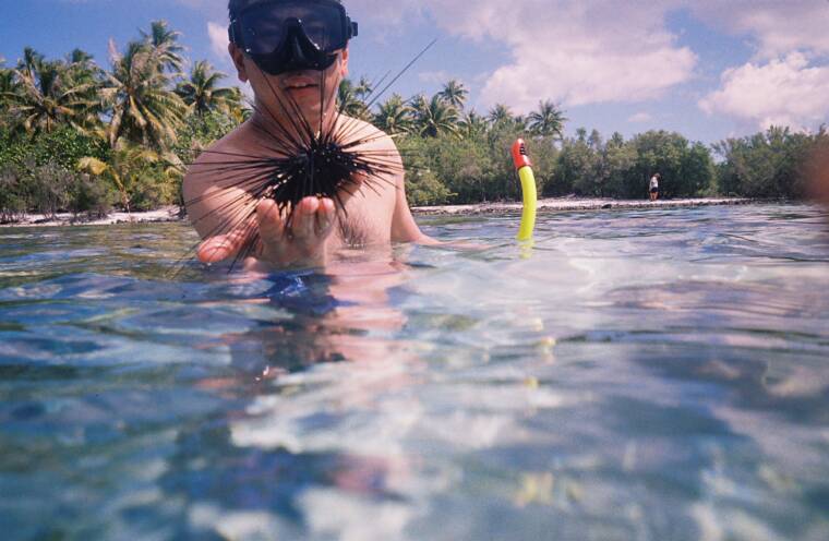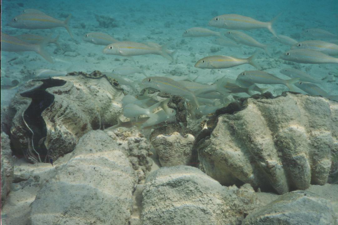 Black pearls (like the Tahitian ones), giant clams that are six feet in width, and giant hermit crabs that can break coconuts... and Aitutaki, one of the most beautiful islands in the world! Could this be the perfect beach? It's up there, rivaling the Tahitian Islands. We spent our first part of the vacation on Rarotonga, where we went to their cultural center. But the real vacation started when we flew into Aitutaki and hung out at the Pearl Resort. Along the lagoon, we experienced some awesome snorkeling and had fun times watching the Cook Island version of their dance. We were literally in the middle of the ocean, and we were standing where the water was around chest high. Tropical fish were everywhere, and just a bit further away were many giant clams that looked big enough to fit a person in.